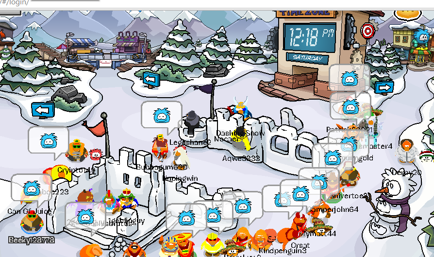 As is usually the case, we cannot be in the actual battling room before the battle starts. The battling room will be the Ice Berg, so we will either start in the Town or the Snow Forts. As of right now, what room for sure is unknown. I’ll let you know the hour leading up to the battle.