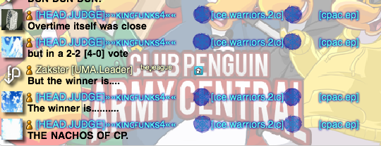 Welcome to the Nachos! We were one of the most powerful and legendary armies in all of Club Penguin. Known for our fun and enjoyable atmosphere, we're always having a good time! Due to Club Penguin shutting down, the army is mostly inactive. However, our older members tend to keep in touch using discord. You can join using the following link.