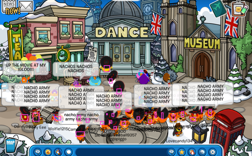 Welcome to the Nachos! We were one of the most powerful and legendary armies in all of Club Penguin. Known for our fun and enjoyable atmosphere, we're always having a good time! Due to Club Penguin shutting down, the army is mostly inactive. However, our older members tend to keep in touch using discord. You can join using the following link.