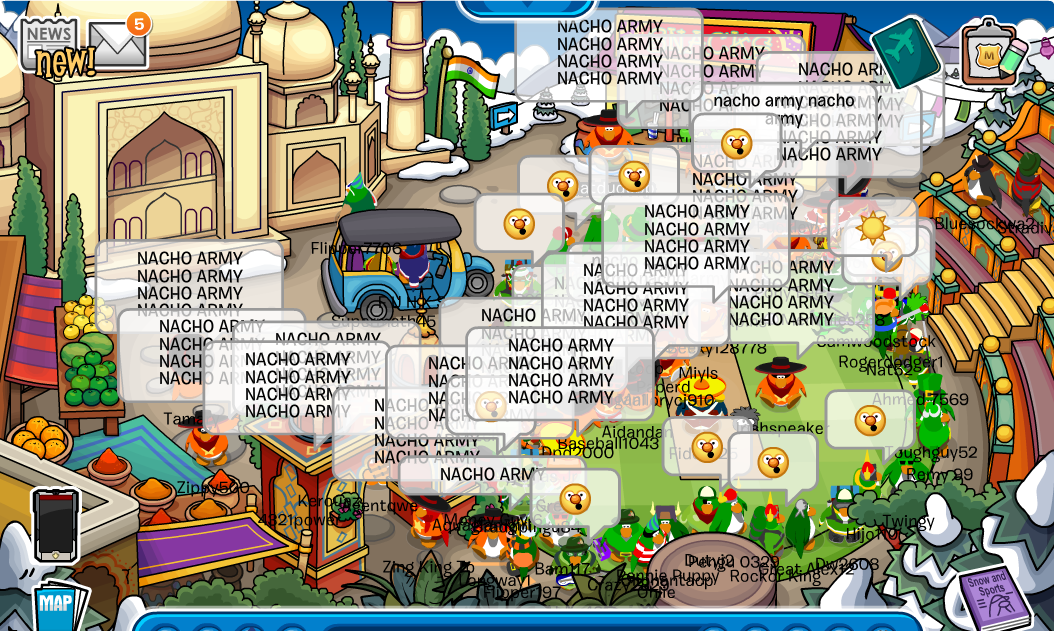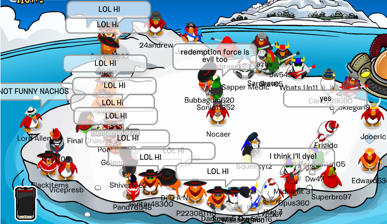 Welcome to the Nachos! We were one of the most powerful and legendary armies in all of Club Penguin. Known for our fun and enjoyable atmosphere, we're always having a good time! Due to Club Penguin shutting down, the army is mostly inactive. However, our older members tend to keep in touch using discord. You can join using the following link.