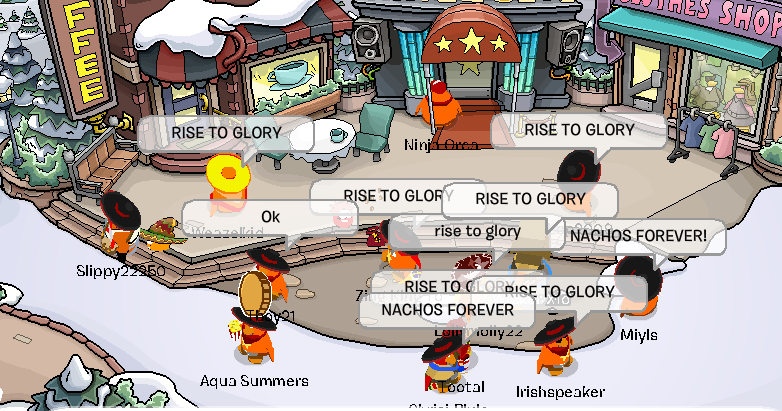 Welcome to the Nachos! We were one of the most powerful and legendary armies in all of Club Penguin. Known for our fun and enjoyable atmosphere, we're always having a good time! Due to Club Penguin shutting down, the army is mostly inactive. However, our older members tend to keep in touch using discord. You can join using the following link.