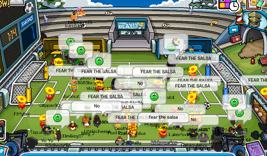 Today we logged onto Frostbite (1 bar server) For a Practice Battle with Dark Warriors. This was an amazing event Nachos! We managed to max a size of 30 troops and averaged a size of 27 Nachos at this Battle. Our tactics were once again back to high standards – we all focused on what was being said on chat, and followed through with our tactics on Club Penguin.