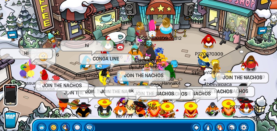Welcome to the Nachos! We were one of the most powerful and legendary armies in all of Club Penguin. Known for our fun and enjoyable atmosphere, we're always having a good time! Due to Club Penguin shutting down, the army is mostly inactive. However, our older members tend to keep in touch using discord. You can join using the following link.