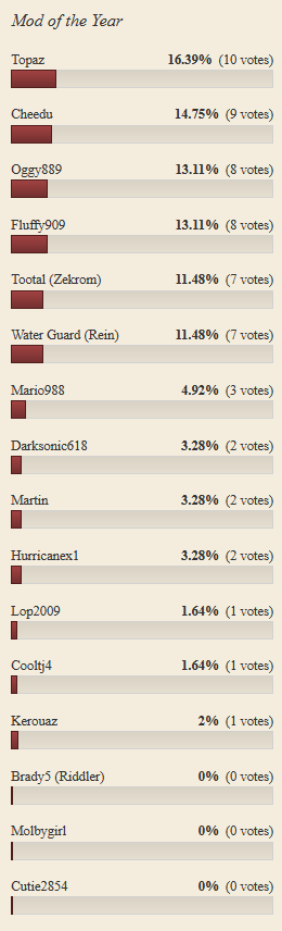 In an incredibly close vote the troops have decided that the best mod this year was none other than Topaz! Topaz has helped this army immensely and is an extremely Loyal Troop!