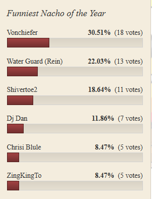 We are regarded as the funniest and most humorous army in the community. Even though our humor can be dry, and it does cause some problems on chat, we have plenty of clowns here! The best Nacho Comedian is…