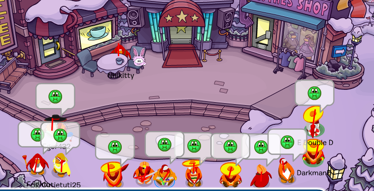 FINALLY Club Penguin is working again and we had a successful event. Today’s event was meant to be a practice battle with the Marines, but they didn’t show. Therefore, we automatically win the battle! Nice job nachos! We maxed and averaged 13. And in honor of the “good ol’ days”, I decided not to use a read-more tag. (What a badass I am)