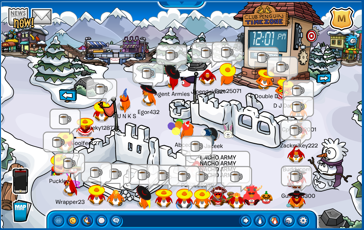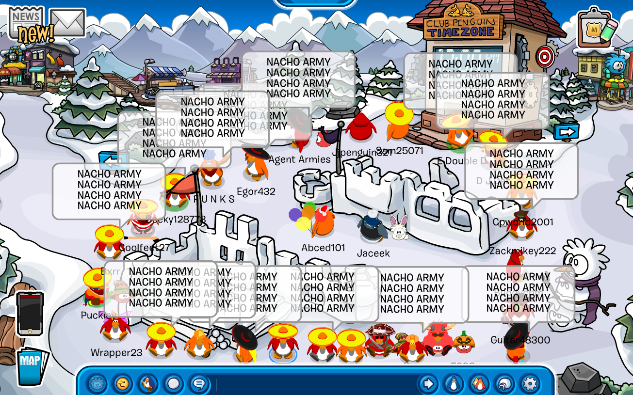Welcome to the Nachos! We were one of the most powerful and legendary armies in all of Club Penguin. Known for our fun and enjoyable atmosphere, we're always having a good time! Due to Club Penguin shutting down, the army is mostly inactive. However, our older members tend to keep in touch using discord. You can join using the following link.