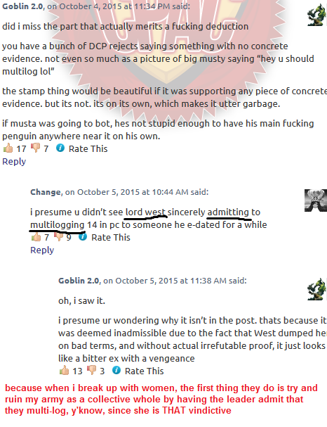 - All those former leaders and members whom admitted to the world that DCP, the army that they were apart of (in Cul’s case, 5 years) are rejects or banished members whom tell nothing but lies and everything that they say has to be a lie unless there is some “irrefutable proof” which has to come from Musta’s mouth that DCP multi-logs. Which is the biggest way to bullshit your way out of all the proof that was shown. Remember kids, for Musta and active DCP members its “innocent until proven guilty”, but for former DCP members, Change, and former DCP leaders/legends, its “guilty until proven innocent.” Their words and them saying all the same story isn’t good enough proof apparently.