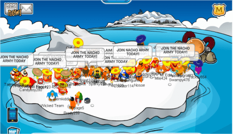 Welcome to the Nachos! We were one of the most powerful and legendary armies in all of Club Penguin. Known for our fun and enjoyable atmosphere, we're always having a good time! Due to Club Penguin shutting down, the army is mostly inactive. However, our older members tend to keep in touch using discord. You can join using the following link.