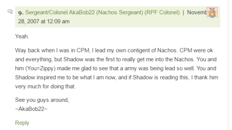 Welcome to the Nachos! We were one of the most powerful and legendary armies in all of Club Penguin. Known for our fun and enjoyable atmosphere, we're always having a good time! Due to Club Penguin shutting down, the army is mostly inactive. However, our older members tend to keep in touch using discord. You can join using the following link.