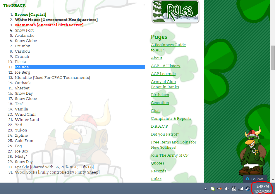 We then logged onto Ice Age with 21 troops and won that server, then we logged onto Ice Box with 19. ACP refused to fight us there so we came out victorious. It was then time to take Outback which we did with ease as once again, ACP was too scared to fight us. We maxed 18.